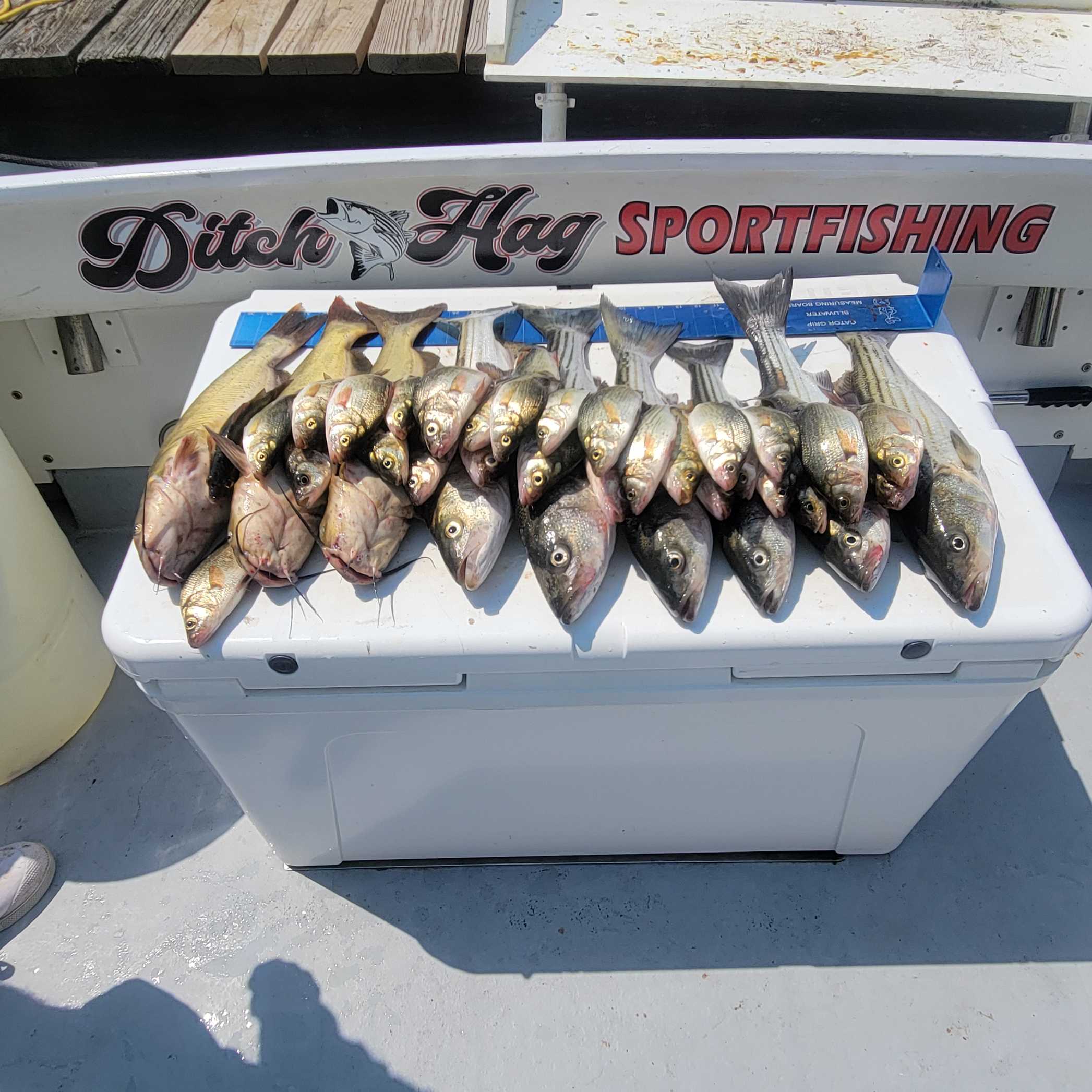 We specialize in targeting local species such as Striped Bass, White Perch, Catfish, and Blue Crab. Using proven methods like trolling and live lining, our approach is hands-on and built around each group’s goals. Guests meet us at 7767 North Point Creek Road in Sparrows Point—just minutes from Baltimore—before heading out to the productive fishing grounds nearby. Whether you're looking to reel in a limit or relax on a casual cruise, Ditch Hag Sportfishing Charters is here to help you make the most of your time on the water.